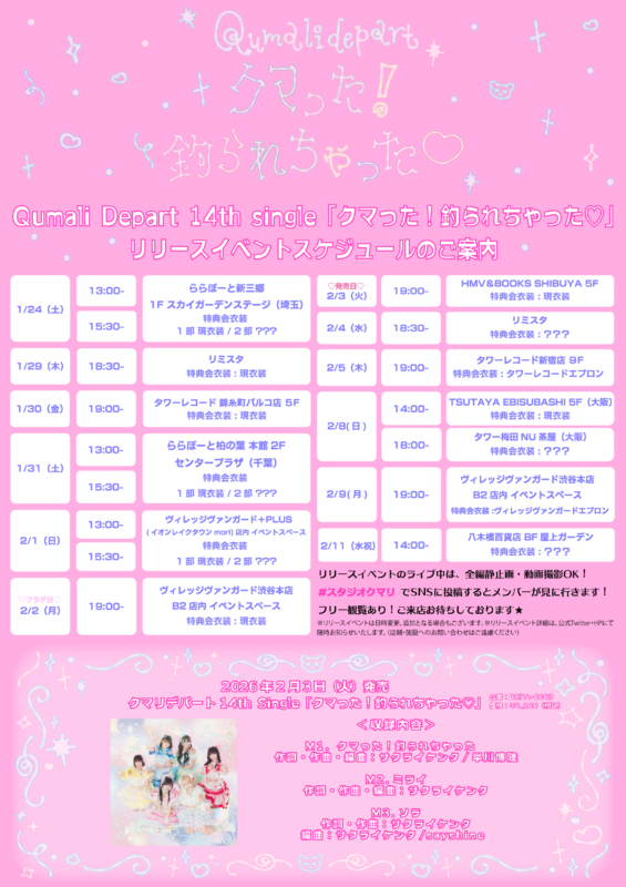 2月3日(火)発売 14th single「クマった!釣られちゃった♡」リリースイベント詳細解禁!