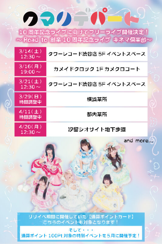 10周年記念ライブに向けてフリーライブ「~Road to 創業10年記念ライブ キネマ倶楽部〜」詳細解禁&日程情報一部更新!